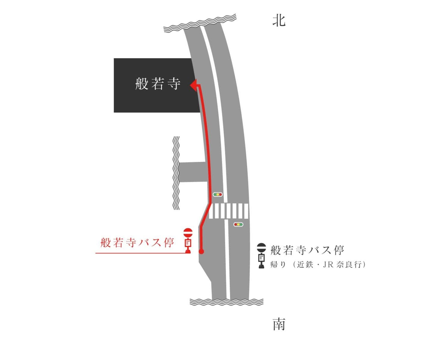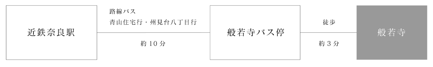 乗車(約10分) → 般若寺バス停下車徒歩(約3分) → 般若寺到着 |